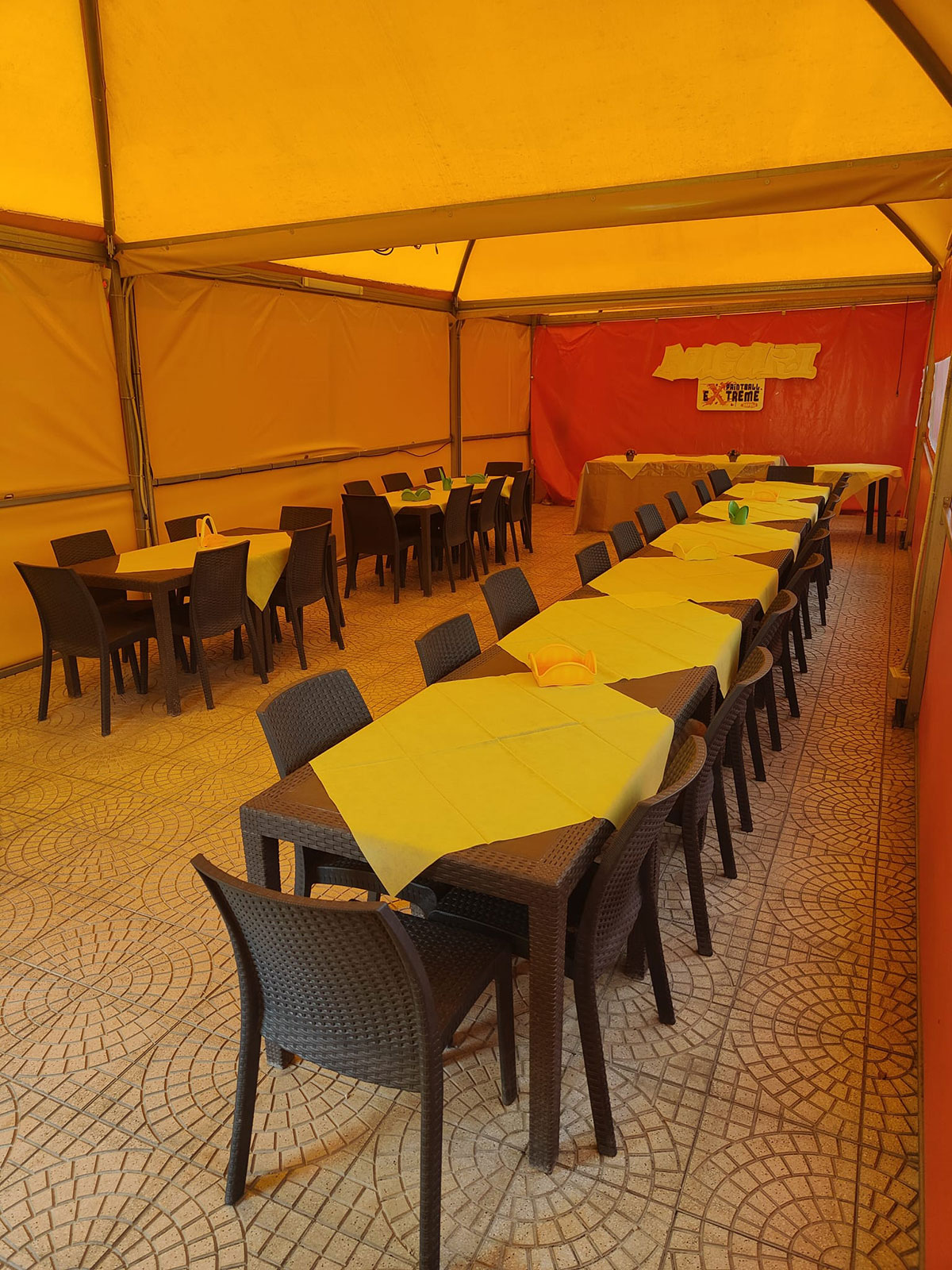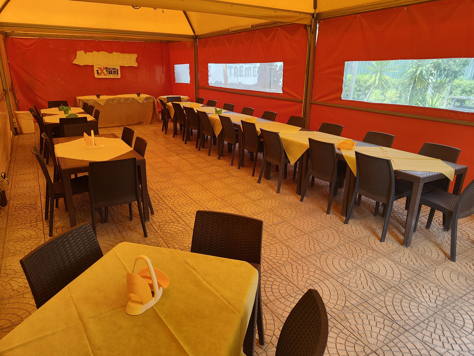 Può ospitare fino ad un massimo di 52 persone, sala chiusa con teli apribili.